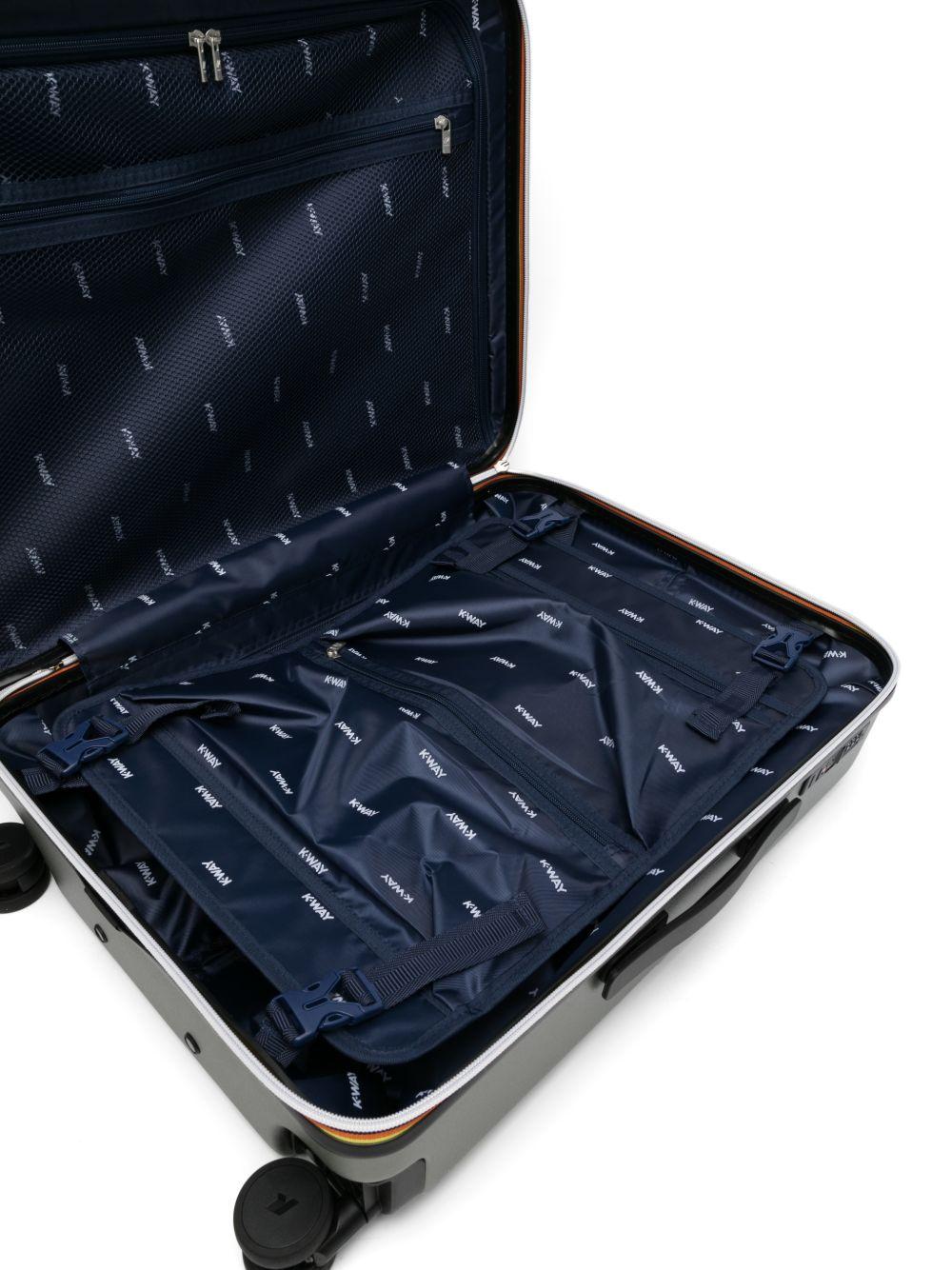 Il prodotto Trolley Eudoxieur K-Way Kids verde con monogramma tono su tono è disponibile sullo store online RubinoKids.com. Realizzato in policarbonato 100%. Il prodotto presenta un colore verde lichene, guscio rigido in policarbonato, fodera in poliestere con logo stampato all-over, pannello divisorio rimovibile con inserti in rete, tasca piccola con zip, sacchetto biancheria con chiusura coulisse, quattro ruote girevoli a 360°, maniglia estensibile in alluminio, sistema di chiusura a combinazione con TSA, tag per etichetta bagaglio, monogramma K-Way tono su tono. Appartiene alla collezione K-Way Kids Primavera/Estate 2026 ed è disponibile con consegna in 24/48h per l'Italia.