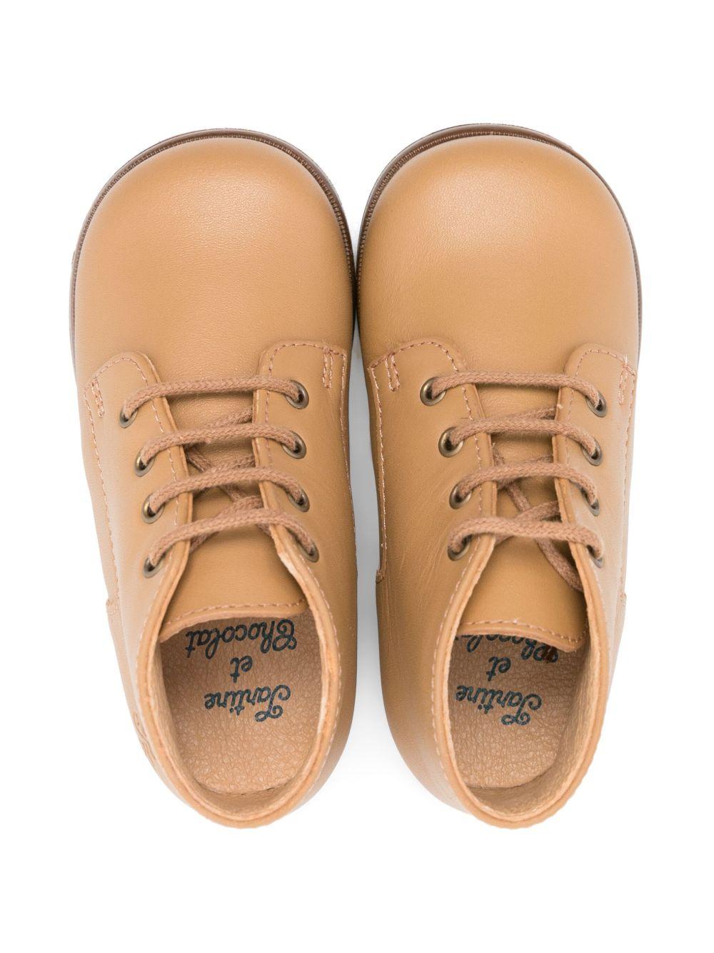 Stivali in pelle per neonato Tartine Et Chocolat marrone cammello con chiusura con lacci