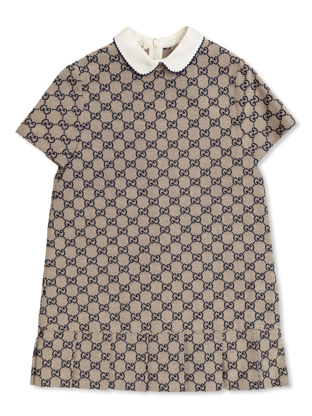 Abito per bambina Gucci Kids beige con stampa logo all-over