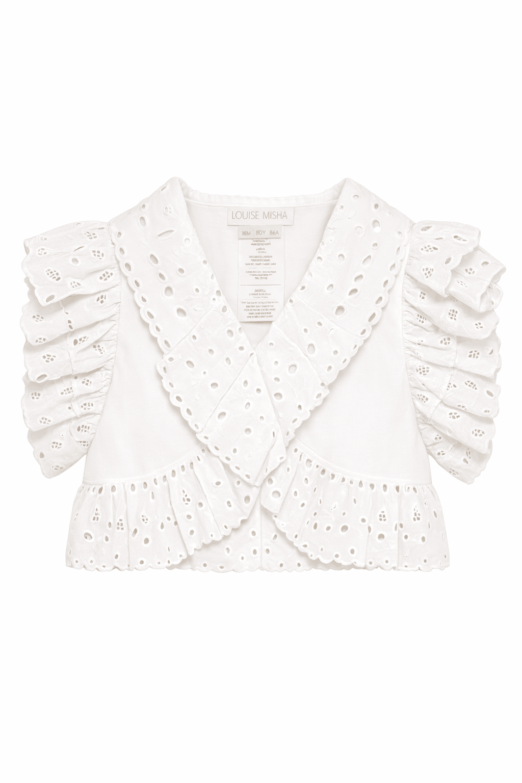 Il prodotto T-shirt per bambina Louise Misha bianca con bordi arricciati è disponibile sullo store online RubinoKids.com. Realizzato in cotone 100%. Il prodotto presenta un colore bianco, bordi arricciati, dettagli occhielli, maniche corte. Varie taglie a catalogo, appartiene alla collezione Louise Misha Primavera/Estate 2026 ed è disponibile con consegna in 24/48h per l'Italia.