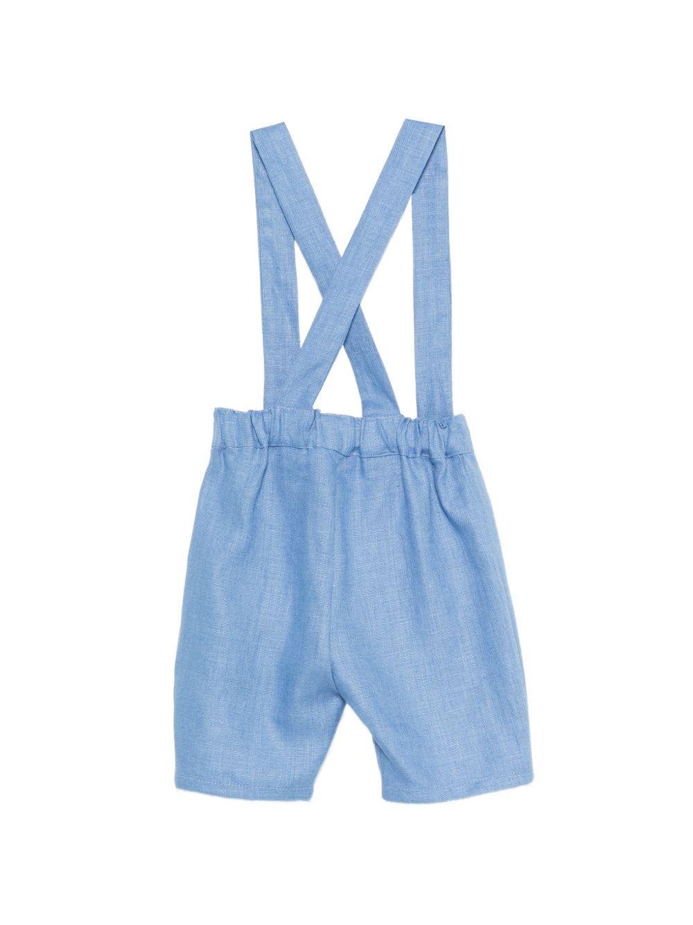 Shorts con bretelle per neonato Mariella Ferrari azzurri con vita elasticizzata sul retro