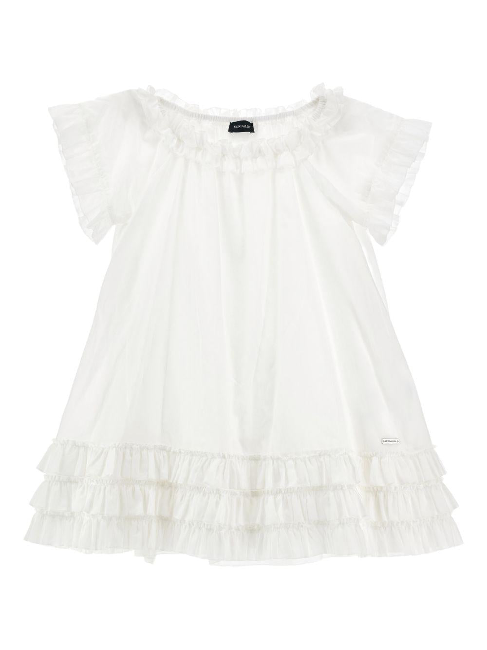 Abito per bambina Monnalisa bianco con rifinitura a ruches