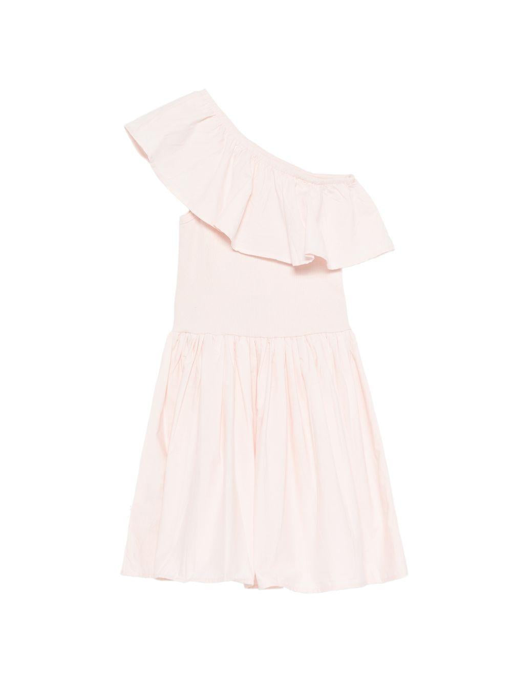 Abito monospalla per bambina Molo rosa chiaro con dettaglio balze