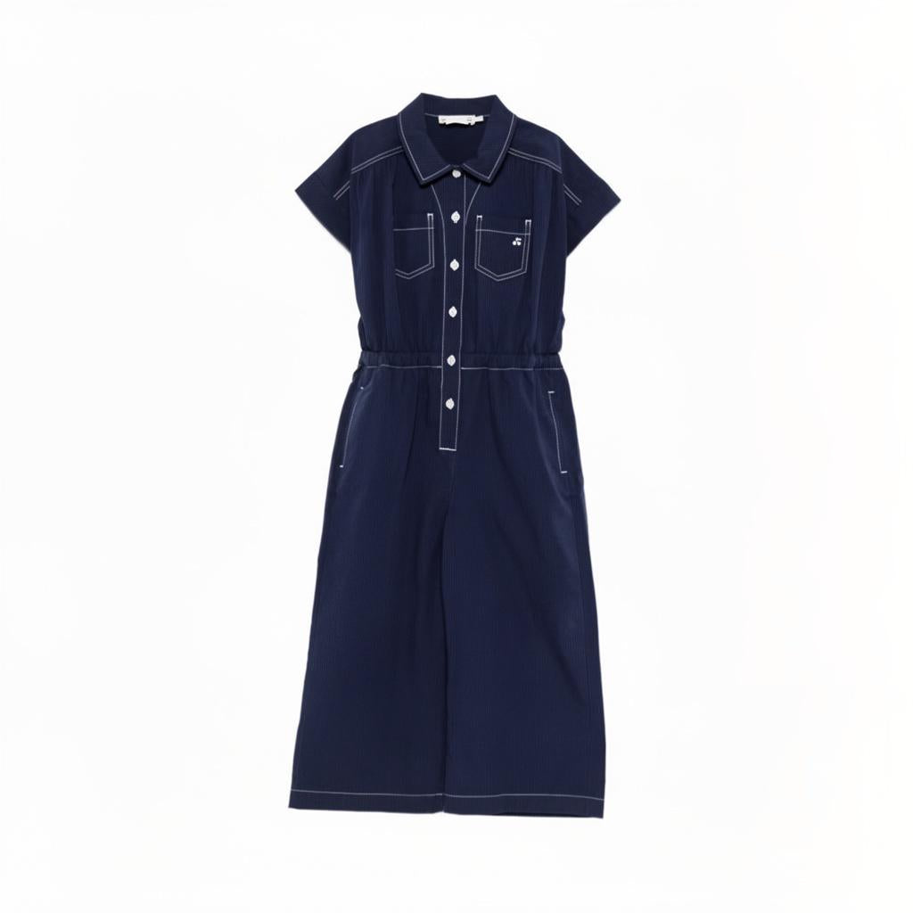 Il prodotto Tuta intera per bambina Bonpoint blu con tasche sul davanti è disponibile sullo store online RubinoKids.com. Realizzato in cotone 100%. Il prodotto presenta un colore blu scuro, tasche sul petto, chiusura a bottoni, maniche corte, vita elasticizzata, dettaglio con cuciture. Varie taglie a catalogo, appartiene alla collezione Bonpoint Primavera/Estate 2026 ed è disponibile con consegna in 24/48h per l'Italia.