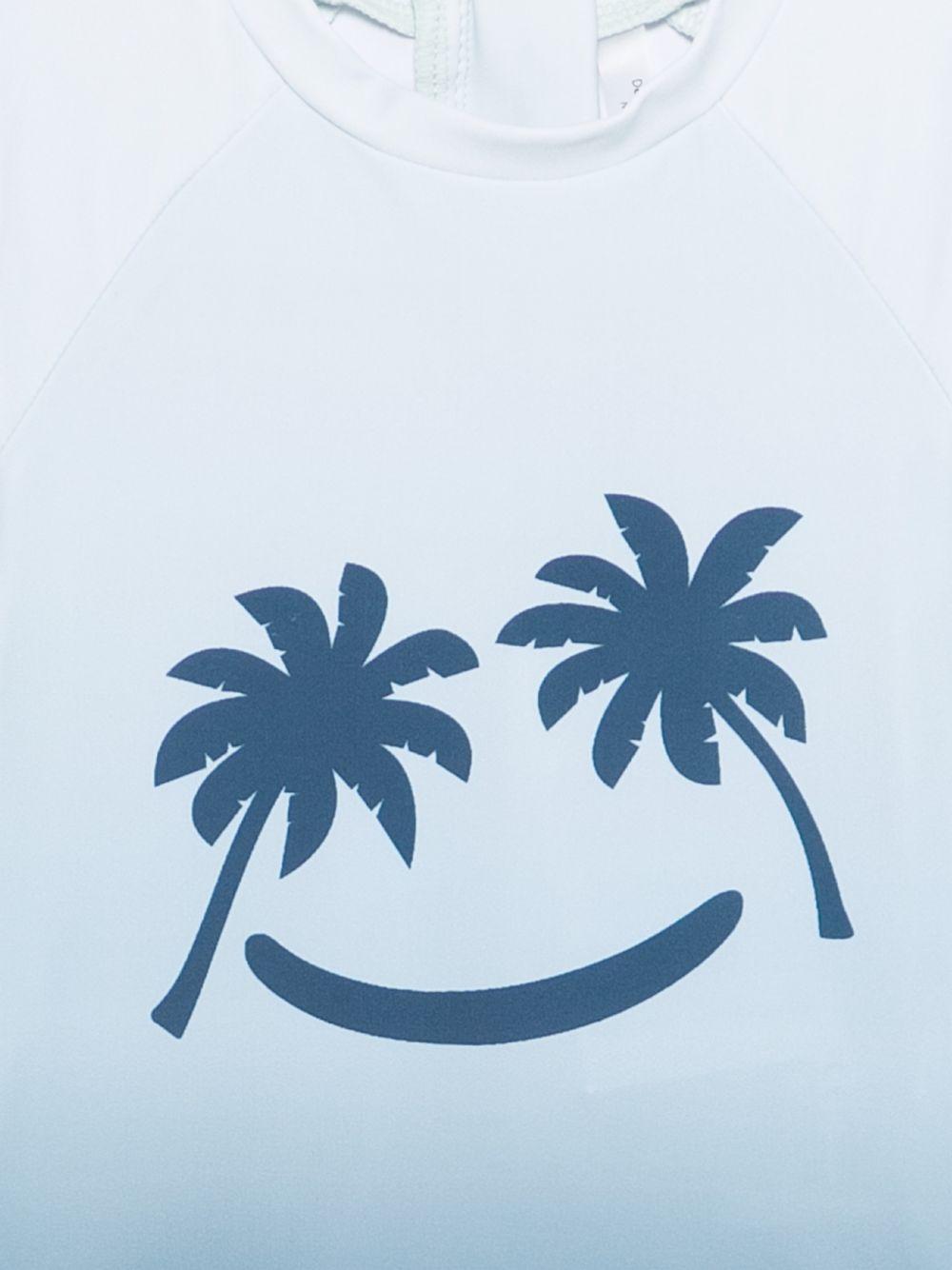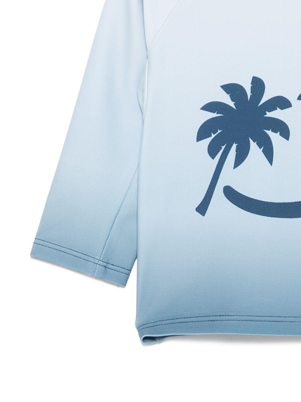 Il prodotto T-shirt anti UV per neonato Molo azzurra a maniche lunghe è disponibile sullo store online RubinoKids.com. Realizzato in poliestere riciclato 80%, elastam 20%. Il prodotto presenta un colore azzurro, maniche lunghe, scollo rotondo, stampa grafica palme. Varie taglie a catalogo, appartiene alla collezione Molo Primavera/Estate 2026 ed è disponibile in pronta spedizione con consegna in 24/48h per l'Italia.