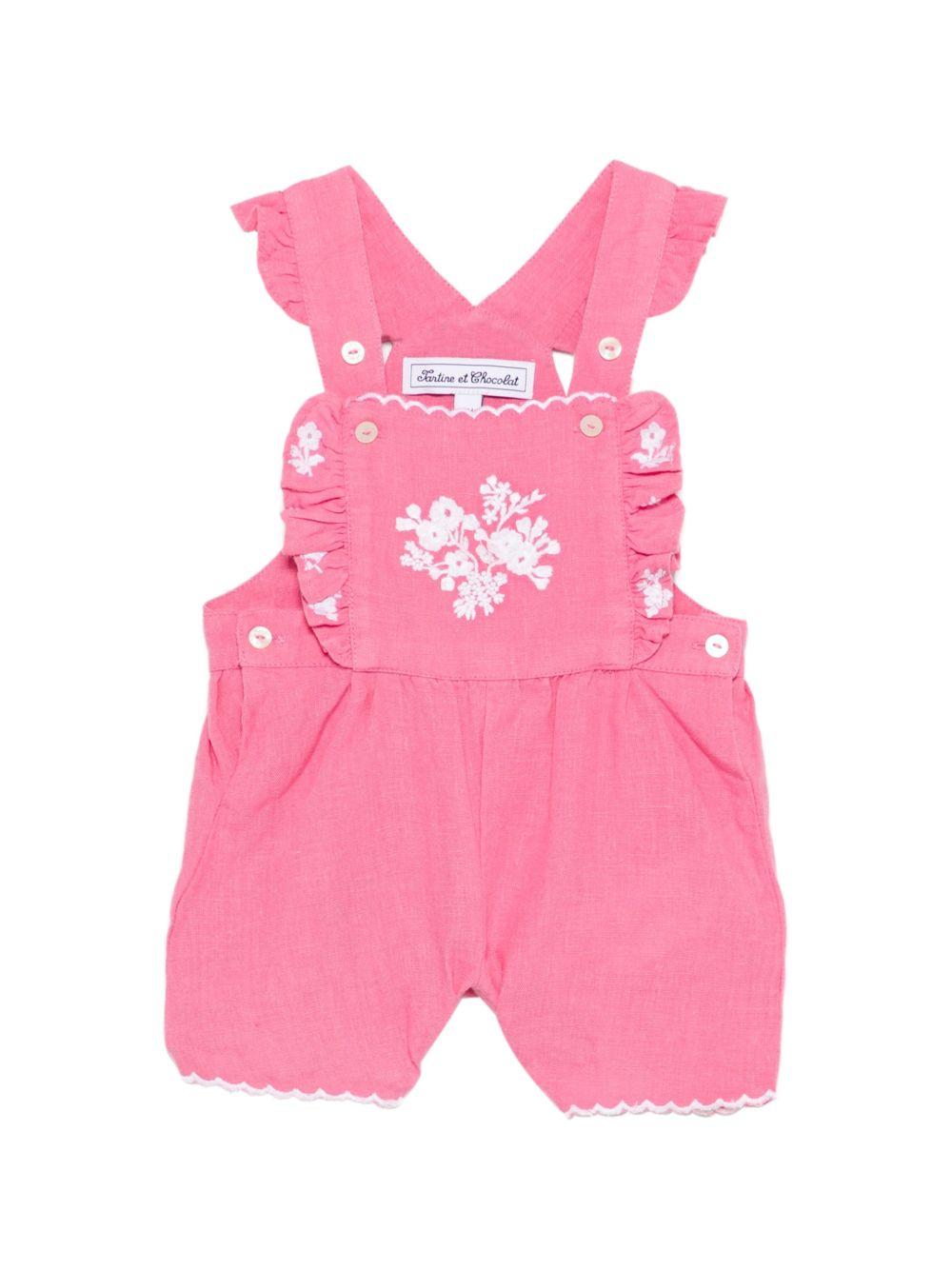 Salopette per neonata Tartine & Chocolat rosa con ricamo a fiori