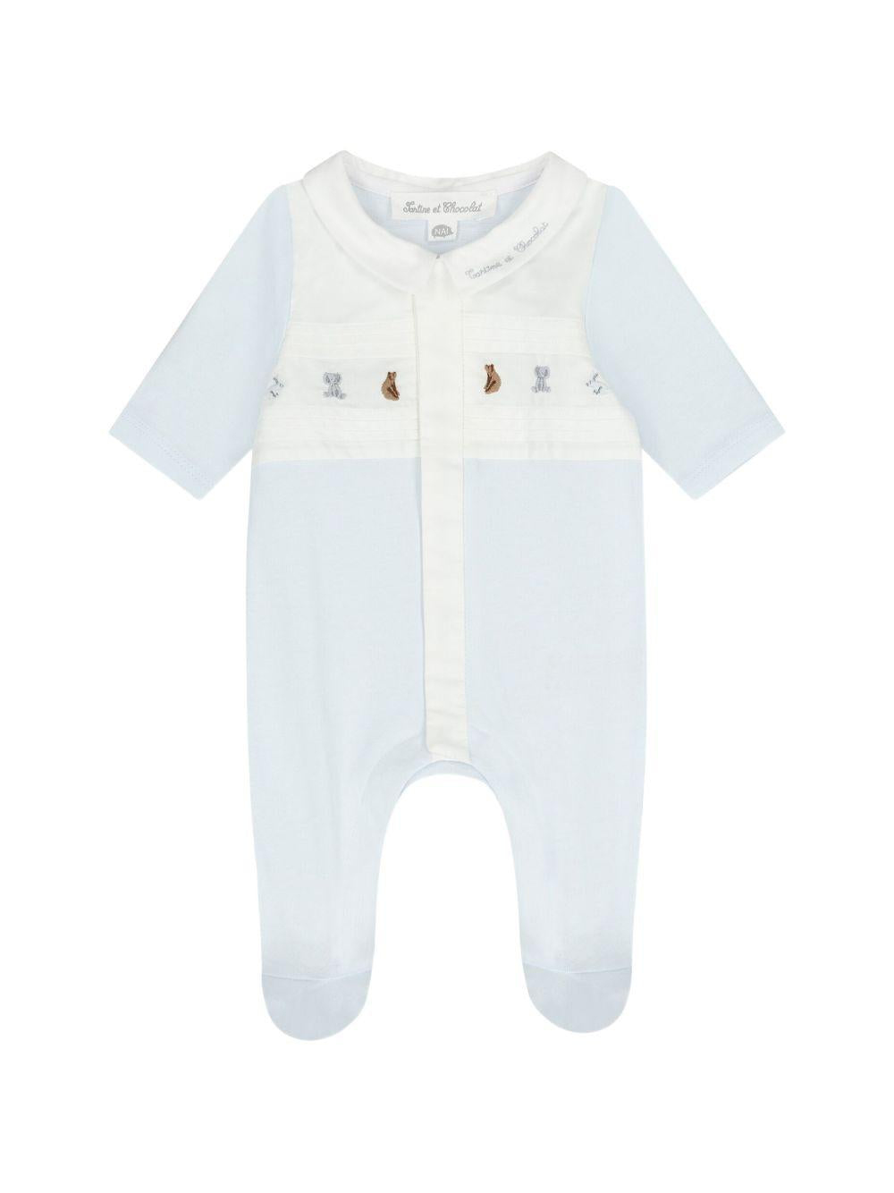 Tartine Et Chocolat baby boy's pajamas in light blue with embroidery