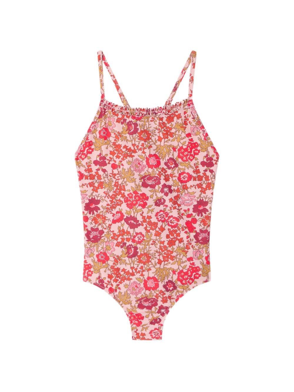 Bonpoint Laika one-piece swimsuit for girls in pink with all-over floral print