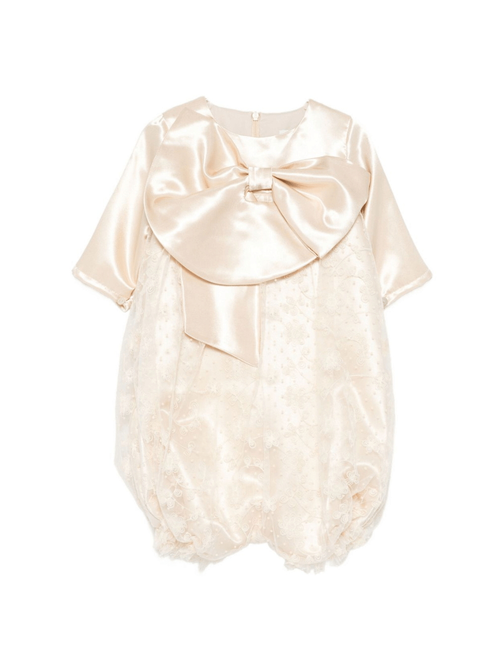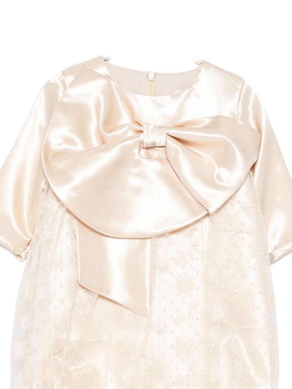 Abito per bambina A'lapage écru con dettaglio fiocco sul davanti