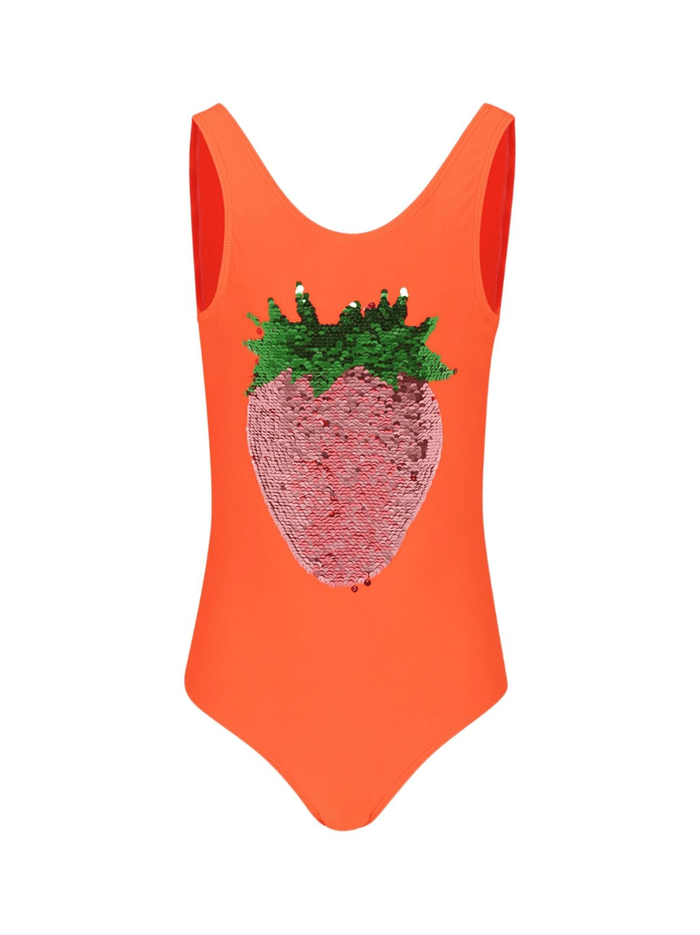 Il prodotto Costume intero per bambina Molo arancione con paillettes e apertura sul retro è disponibile sullo store online RubinoKids.com.