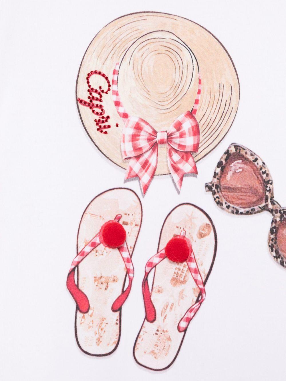 T-shirt con stampa Capri per bambina Monnalisa bianco con dettaglio pompon