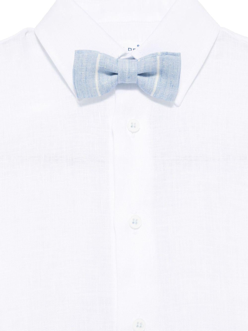 Il prodotto Set pantaloncini e maglietta a righe per bambino Colorichiari bianco con patta frontale è disponibile sullo store online RubinoKids.com. Realizzato in lino 100%. Il prodotto presenta una patta frontale con bottoni azzurri, patta nascosta e chiusura con bottoni, polsini con bottoni, passanti per cintura. Taglia a catalogo, appartiene alla collezione Colorichiari Primavera/Estate 2025 ed è disponibile in pronta spedizione con consegna in 24/48h per l'Italia.