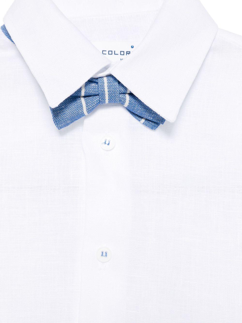 Il prodotto Set pantaloncini e maglietta a righe per bambino Colorichiari bianco con patta frontale è disponibile sullo store online RubinoKids.com. Realizzato in lino 100%. Il prodotto presenta una patta frontale con bottoni blu, patta nascosta e chiusura con bottoni, polsini con bottoni, passanti per cintura. Taglia a catalogo, appartiene alla collezione Colorichiari Primavera/Estate 2025 ed è disponibile in pronta spedizione con consegna in 24/48h per l'Italia.