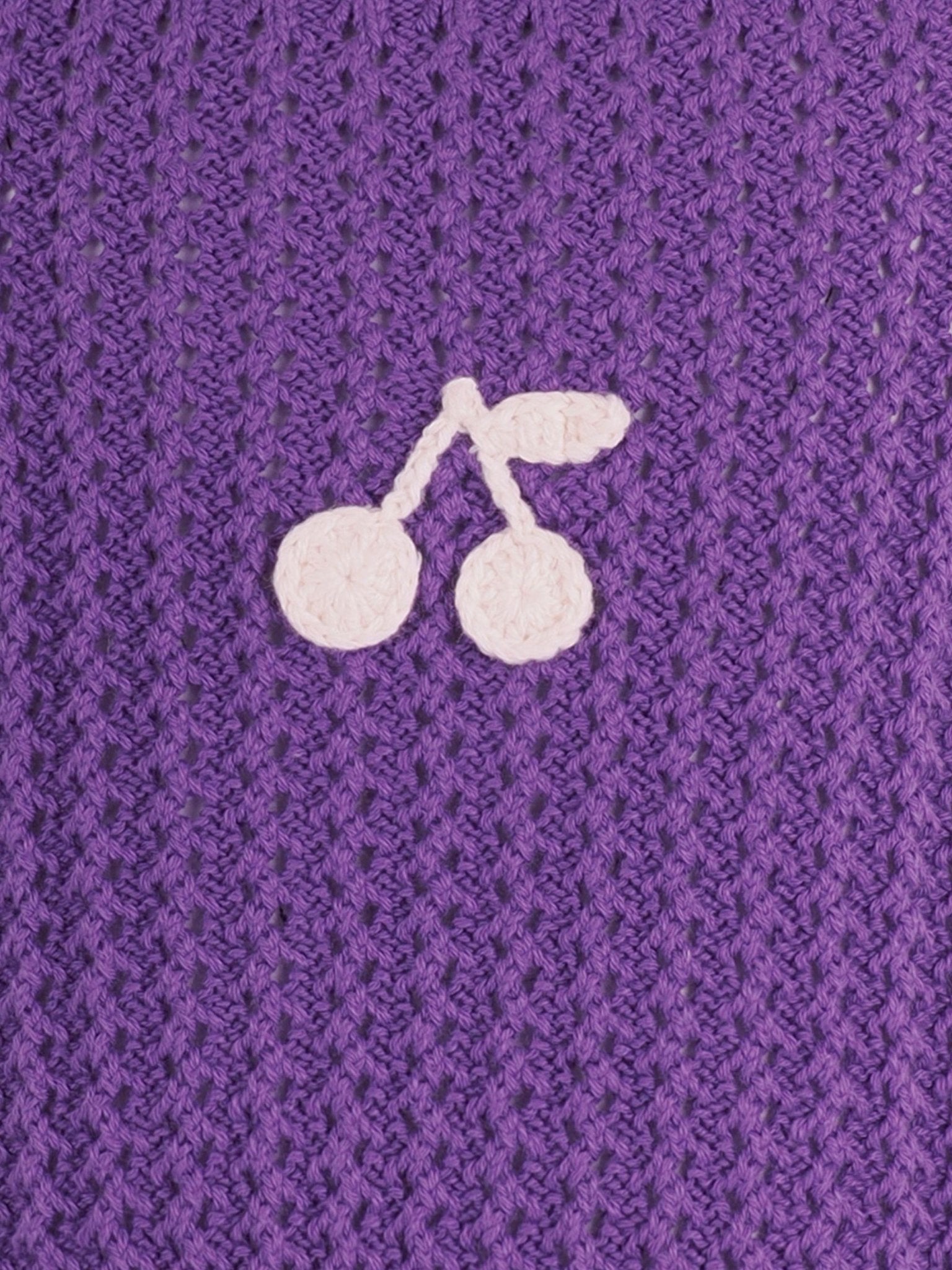 Il prodotto Top per bambina Bonpoint viola con motivo a ciliega è disponibile sullo store online RubinoKids.com. Realizzato in cotone 100%. Il prodotto presenta un colore viola, motivo ciliege, rifinitura a righe, scollo quadrato, senza maniche. Varie taglie a catalogo, appartiene alla collezione Bonpoint Primavera/Estate 2026 ed é disponibile con consegna in 24/48h per l'Italia.