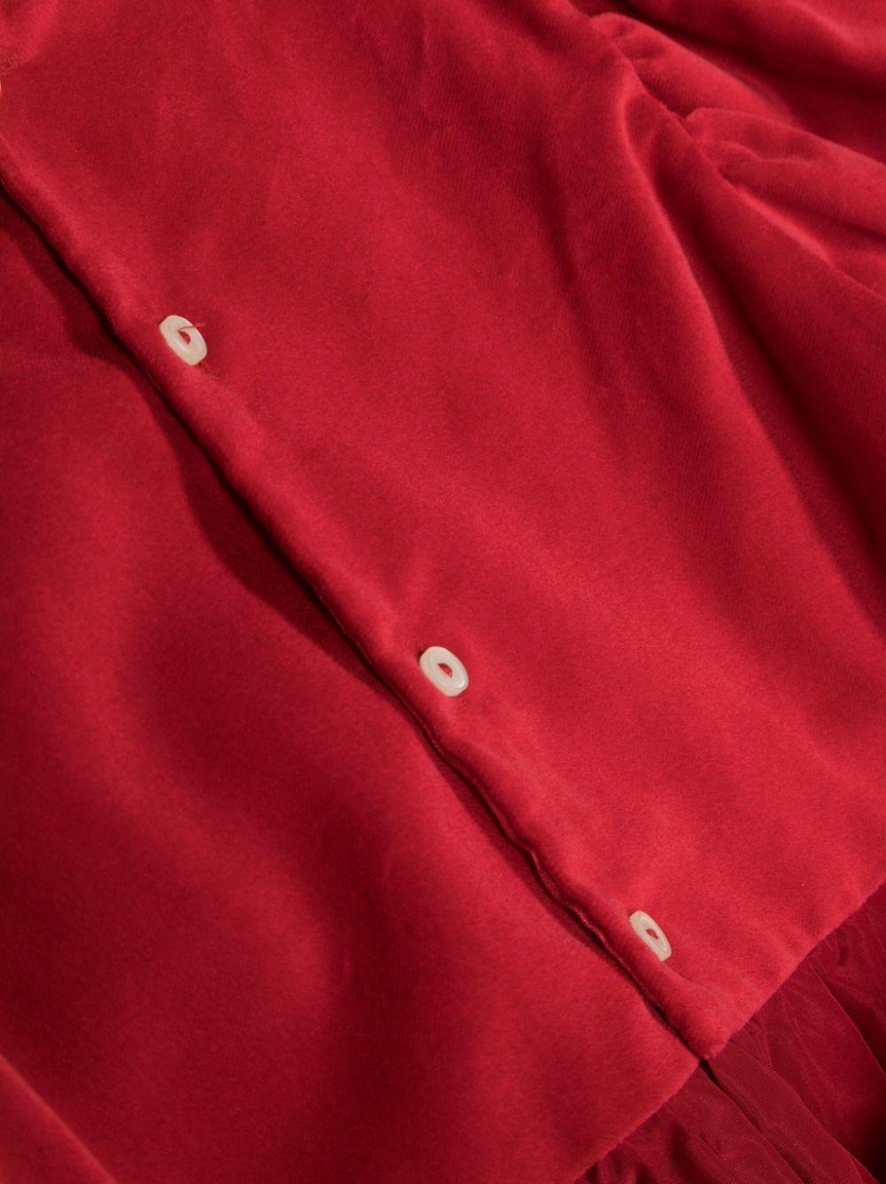 Il prodotto Mariella Ferrari abito con maniche a sbuffo e finiture in velluto è disponibile sullo store online RubinoKids.com. Realizzato in Cotone 100%, Acetato 100%. Il prodotto presenta uno scollo rotondo, chiusura posteriore con bottone, chiusura posteriore con fiocco, maniche corte a palloncino e orlo svasato. Varie taglie a catalogo, appartiene alla collezione Mariella Ferrari Autunno/Inverno 2023 ed è disponibile in pronta spedizione con consegna in 24/48h per l'Italia.
