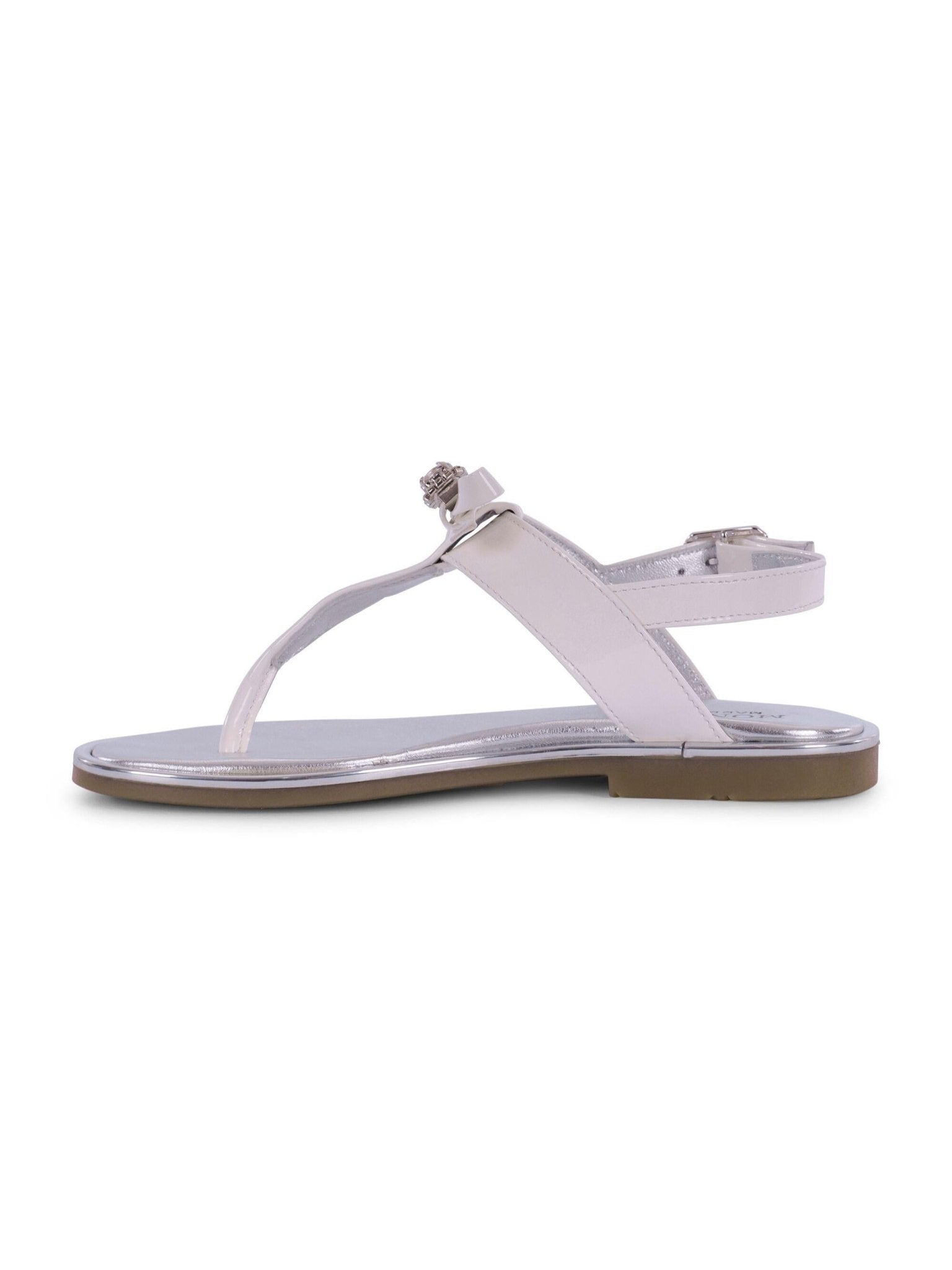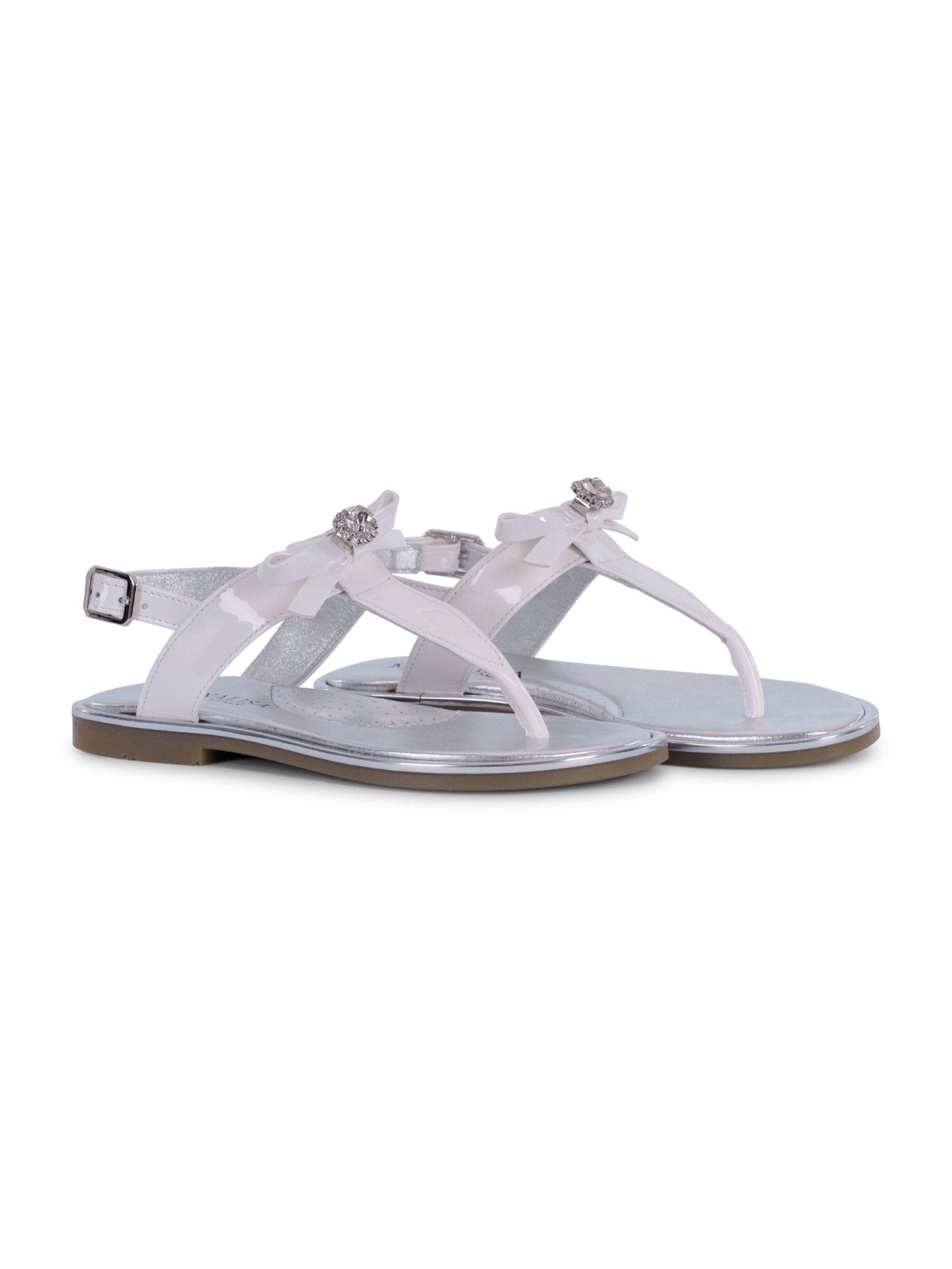 Il prodotto Sandali per bambina Monnalisa bianchi con dettaglio fiocco è disponibile sullo store online RubinoKids.com. Realizzato in pelle di vitello 100%. Il prodotto presenta un colore bianco, dettaglio con fiocco, decorazione con perline, chiusura con fibbia, cinturino a T, suola piatta. Varie taglie a catalogo, appartiene alla collezione Monnalisa Primavera/Estate 2026 ed é disponibile con consegna in 24/48h per l'italia.