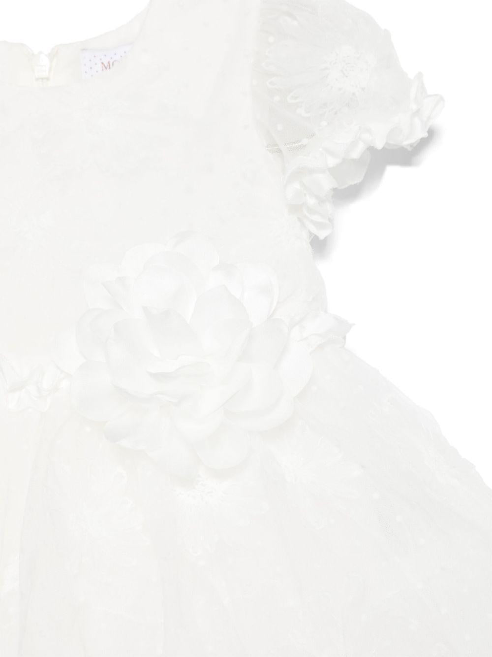 Abito in point d'esprit per neonata Monnalisa bianco con gonna lunga svasata