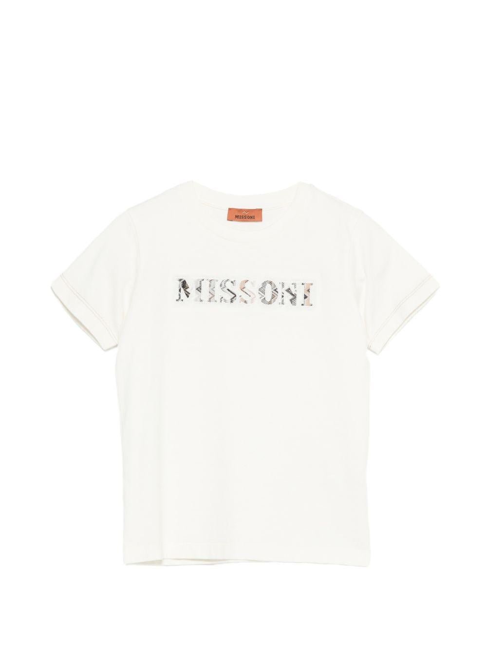T-shirt per bambino Missoni Kids bianca con logo ricamato