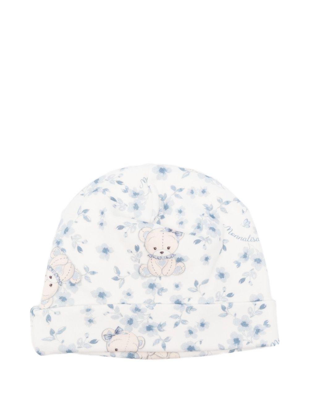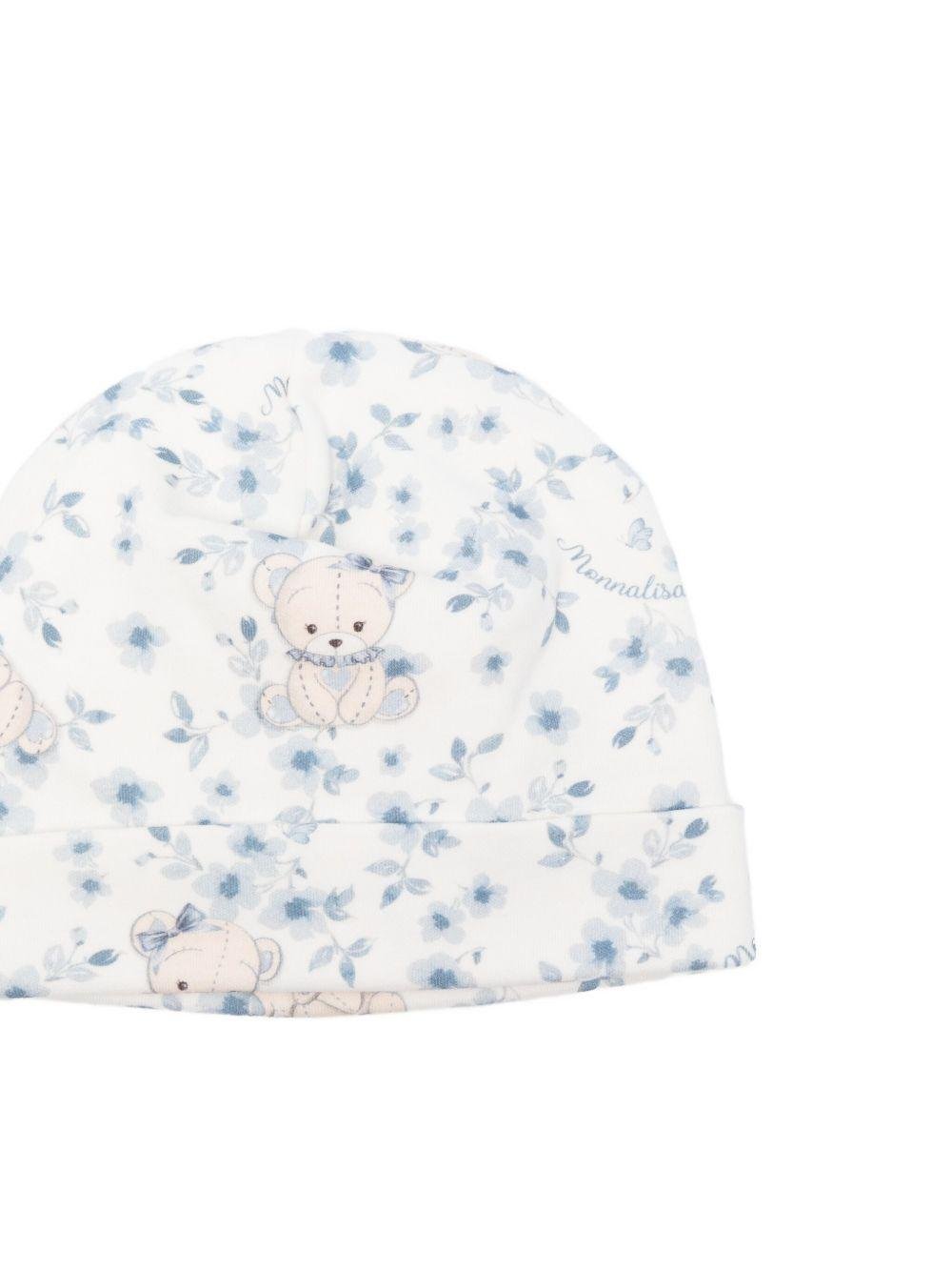Berretto per neonato Monnalisa azzurro con stampa orsetto