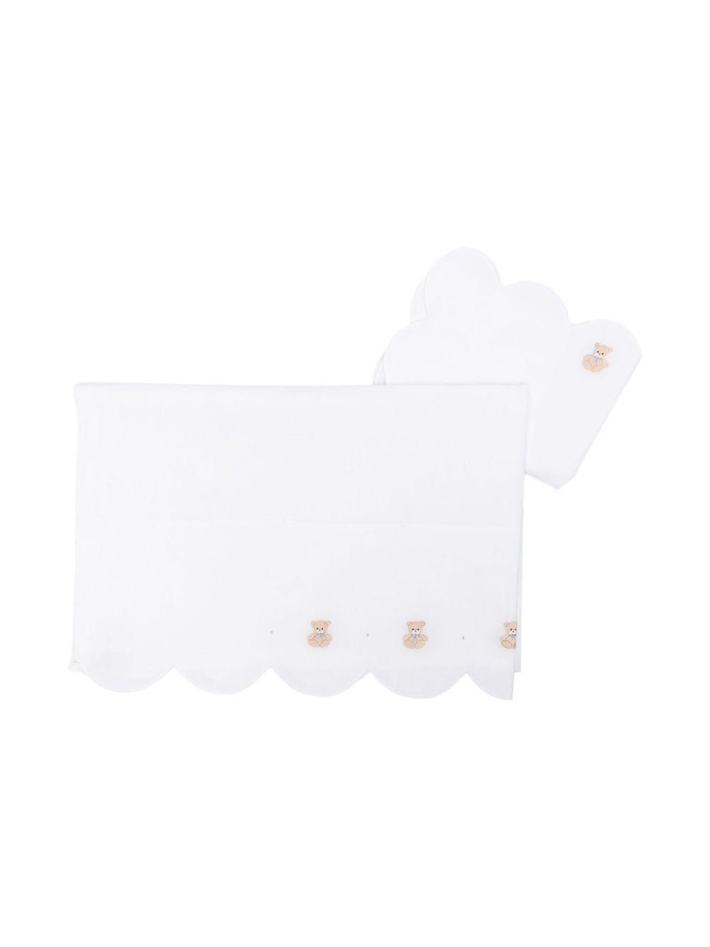 Lenzuolo da culla per neonati Mariella Ferrari bianca con ricamo Teddy Bear