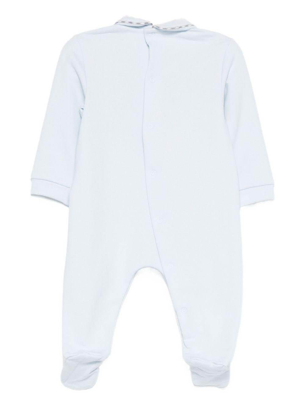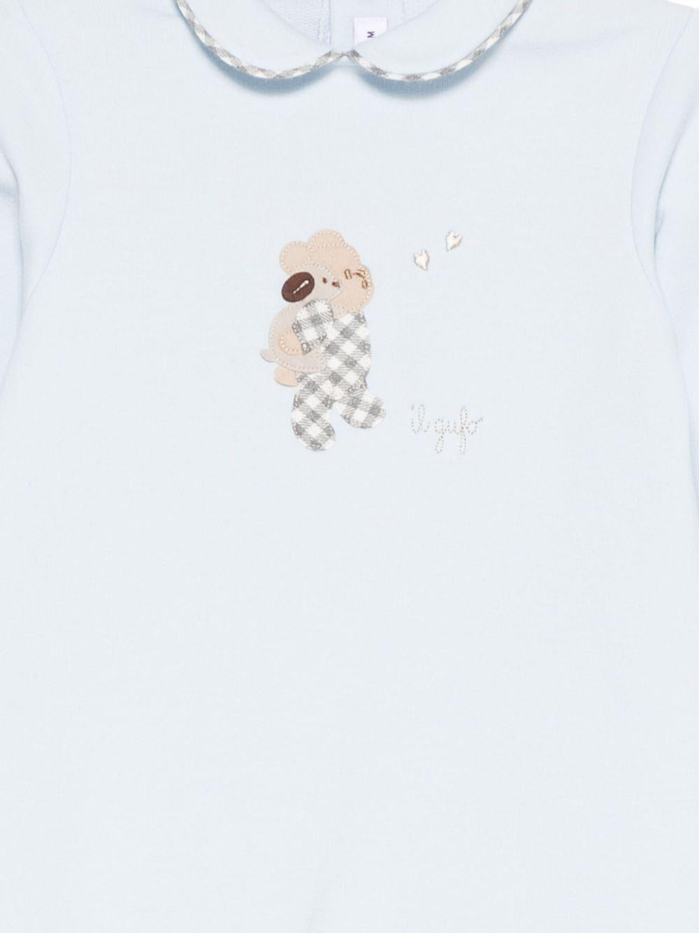 Tutina per neonato Il Gufo azzurra con colletto alla Peter Pan