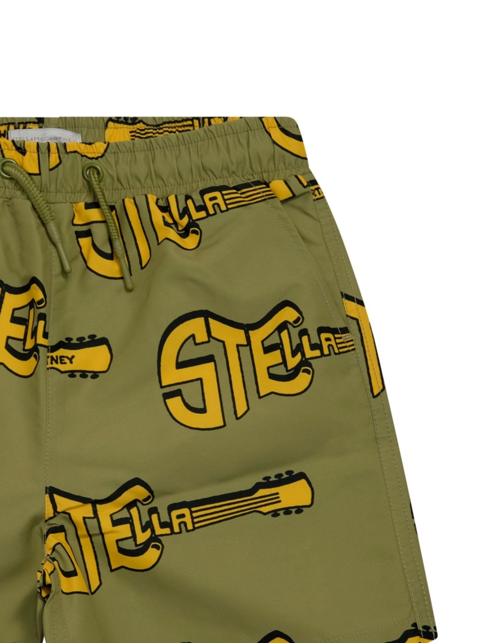 Il prodotto Costume per bambino Stella McCartney Kids verde con stampa logo all-over è disponibile sullo store online RubinoKids.com. Realizzato in poliestere 100%. Il prodotto presenta un colore verde, stampa logo all-over, logo a forma di chitarra, vita elasticizzata, chiusura a coulisse. Varie taglie a catalogo, appartiene alla collezione StellaMcCartney Kids Primavera/Estate 2026 ed é disponibile con consegna in 24/48h per l'italia.