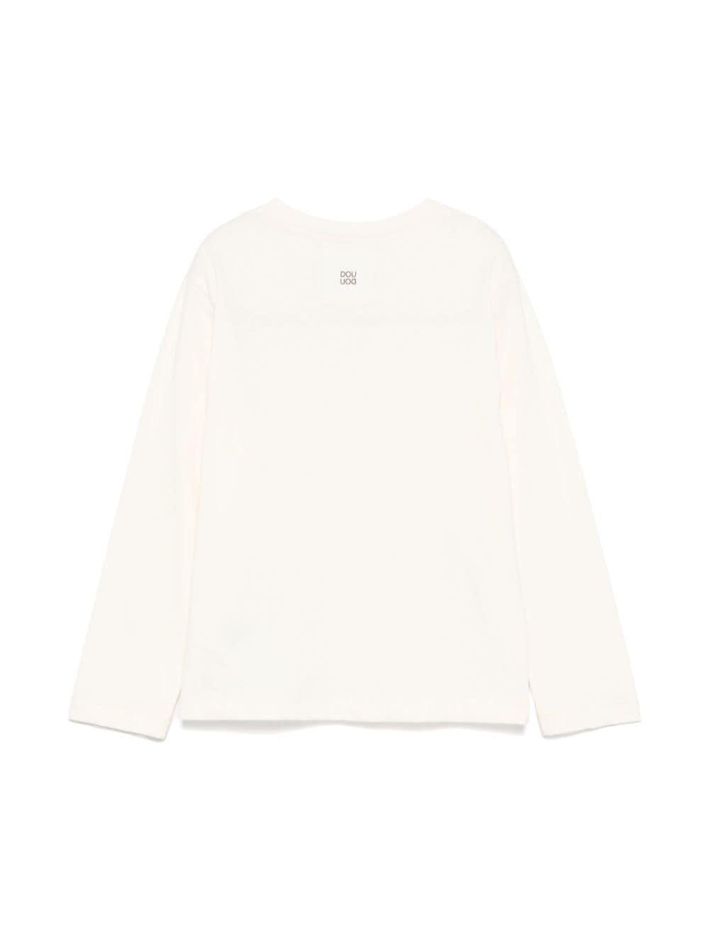 T-shirt per bambina Douuod Kids ecru con applicazione logo sul petto