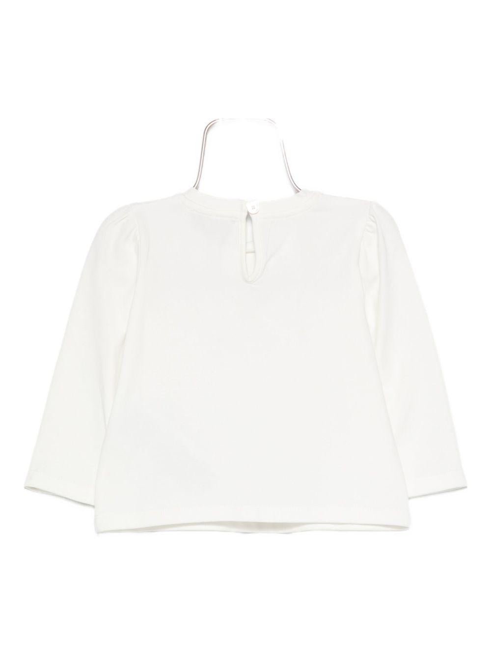 Il prodotto T-shirt per neonata Moschino Kids bianca con motivo Teddy Bear ds è disponibile sullo store online RubinoKids.com. Realizzato in cotone cotone 95%, elastam 5%. Il prodotto presenta un colore bianco, maniche lunghe, chisura con bottone posteriore. Varie taglie a catalogo, appartiene alla collezione Moschino Kids Autunno/Inverno 2025 ed è disponibile con consegna in 24/48h per l'Italia.