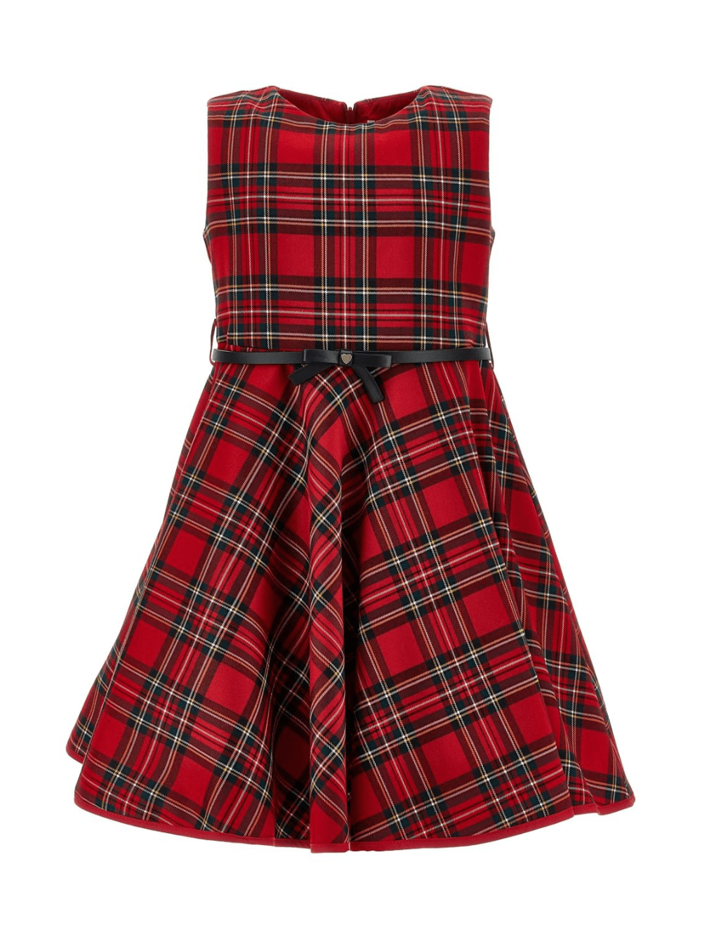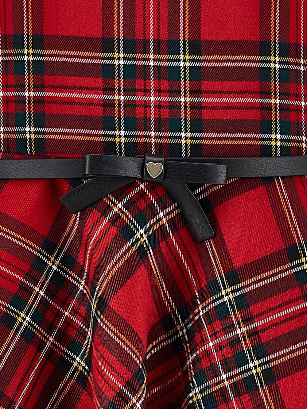 The Monnalisa red checked dress for girls is available on the RubinoKids.com online store. Made of 100% fabric, it features a red color, a concealed back zip closure, a belted design, a flared skirt, and a checked pattern. Available in various sizes, it is part of the Monnalisa Fall/Winter 2025 collection and is available for 24-48 hour delivery in Italy.
