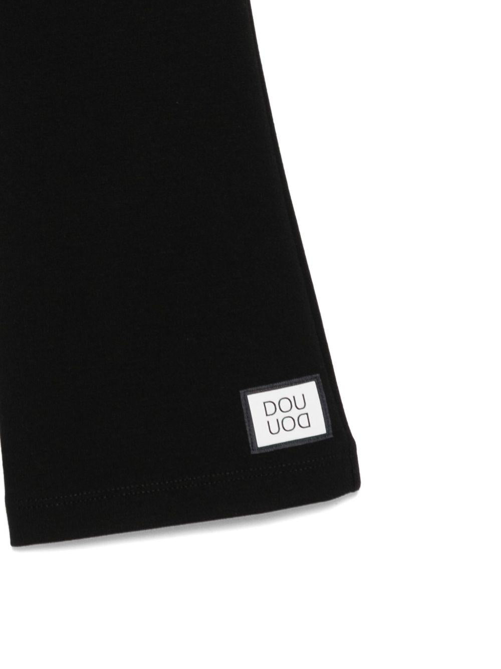 The Douuod Kids black flared trousers for girls are available on the RubinoKids.com online store. Made from 71% viscose, 24% polyamide, and 5% elastane, they are black, feature a flared leg, an elastic waistband, and a logo patch. Available in various sizes, they are part of the Douuod Kids Fall/Winter 2025 collection and are available for immediate shipment with delivery within 24-48 hours in Italy.