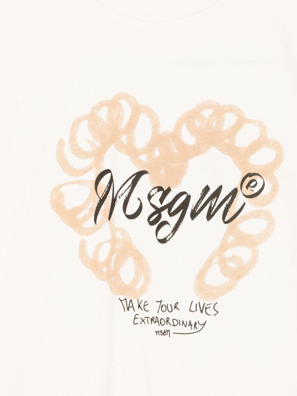 The MSGM Kids white T-shirt for girls with a logo on the front is available on the RubinoKids.com online store. Made of 100% cotton, it features a white color, a logo on the front, a crew neck, and short sleeves. Available in various sizes, it is part of the MSGM Kids Fall/Winter 2025 collection and is available for delivery in Italy within 24-48 hours.
