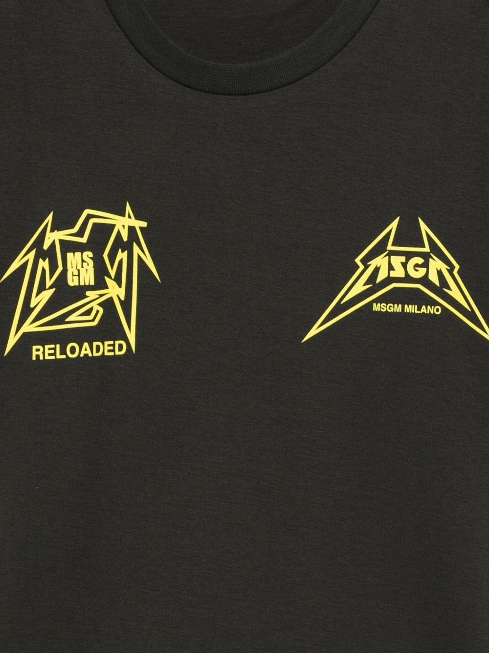 The MSGM Kids black graphic print T-shirt for boys is available on the RubinoKids.com online store. Made of 100% cotton, it features a black graphic print, short sleeves, a crew neck, and a straight hem. Available in various sizes, it is part of the MSGM Kids Fall/Winter 2025 collection and is available for immediate shipment with delivery within 24-48 hours in Italy.