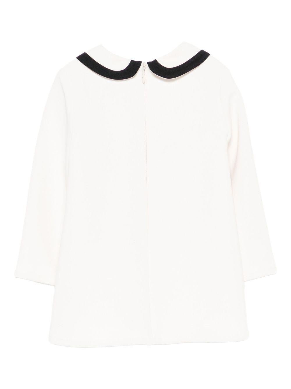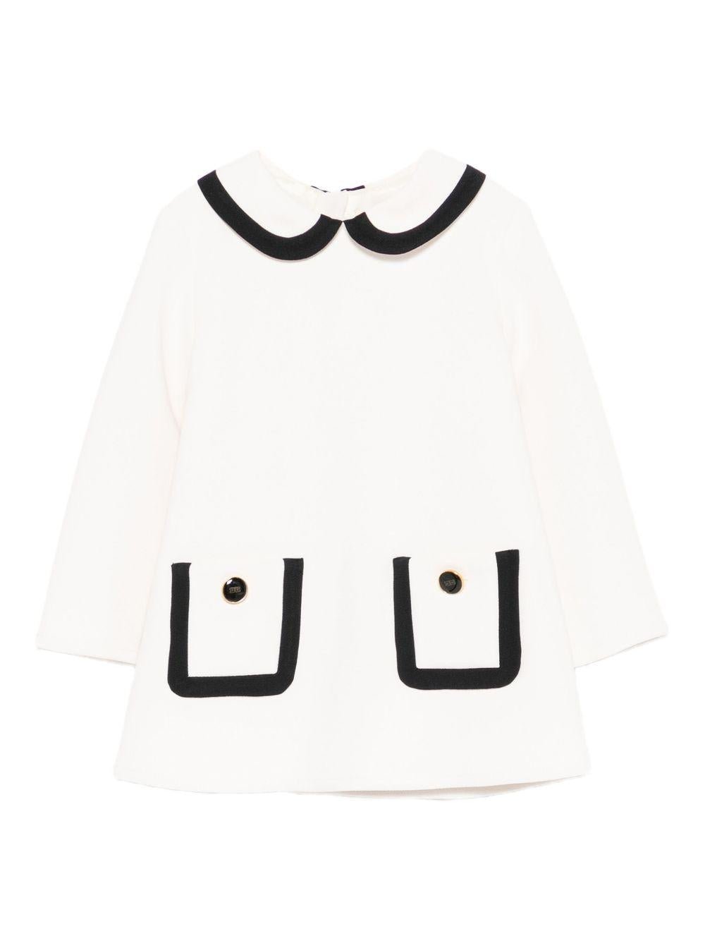 The Elisabetta Franchi La Mia Bambina white dress for baby girls with a Peter Pan collar is available on the RubinoKids.com online store. Made of 94% polyester, 6% elastane, the white dress features a Peter Pan collar, a contrasting trim, two patch pockets, button detailing, and long sleeves. Available in various sizes, it is part of the Elisabetta Franchi La Mia Bambina Fall/Winter 2025 collection and is available for immediate shipment with delivery within 24-48 hours in Italy.