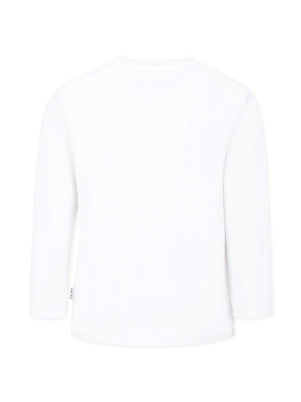 The Molo white crewneck sweatshirt with football motif for boys is available on the RubinoKids.com online store. Made of 100% cotton, it features a graphic print on the chest, a crew neck, long sleeves, and a straight hem. This size is from the Molo Spring/Summer 2025 collection and is available for immediate shipment with delivery within 24-48 hours in Italy.