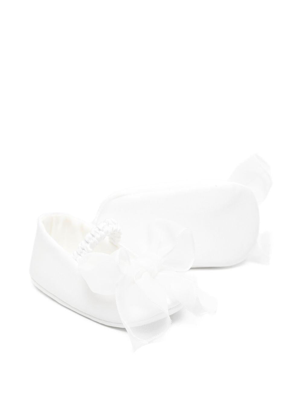 The Colorichiari white baby girl ballet flats with bow are available on the RubinoKids.com online store. Made of 100% fabric, they feature a white color, bow, elasticized trims, a round toe, and a flat sole. Available in various sizes, they are part of the Colorichiari Spring/Summer 2026 collection and are available for 24-48 hour delivery in Italy.