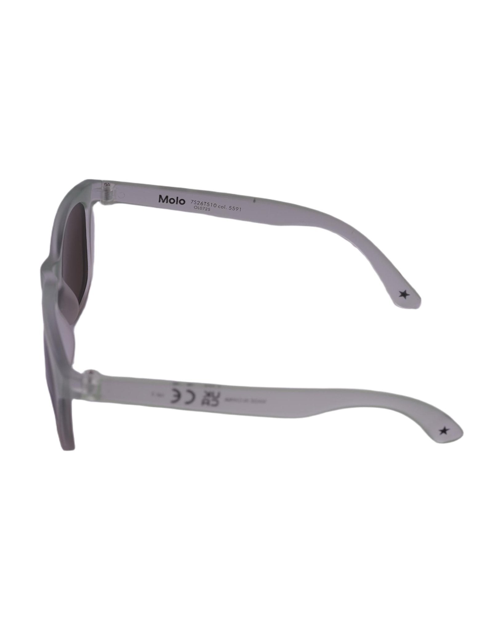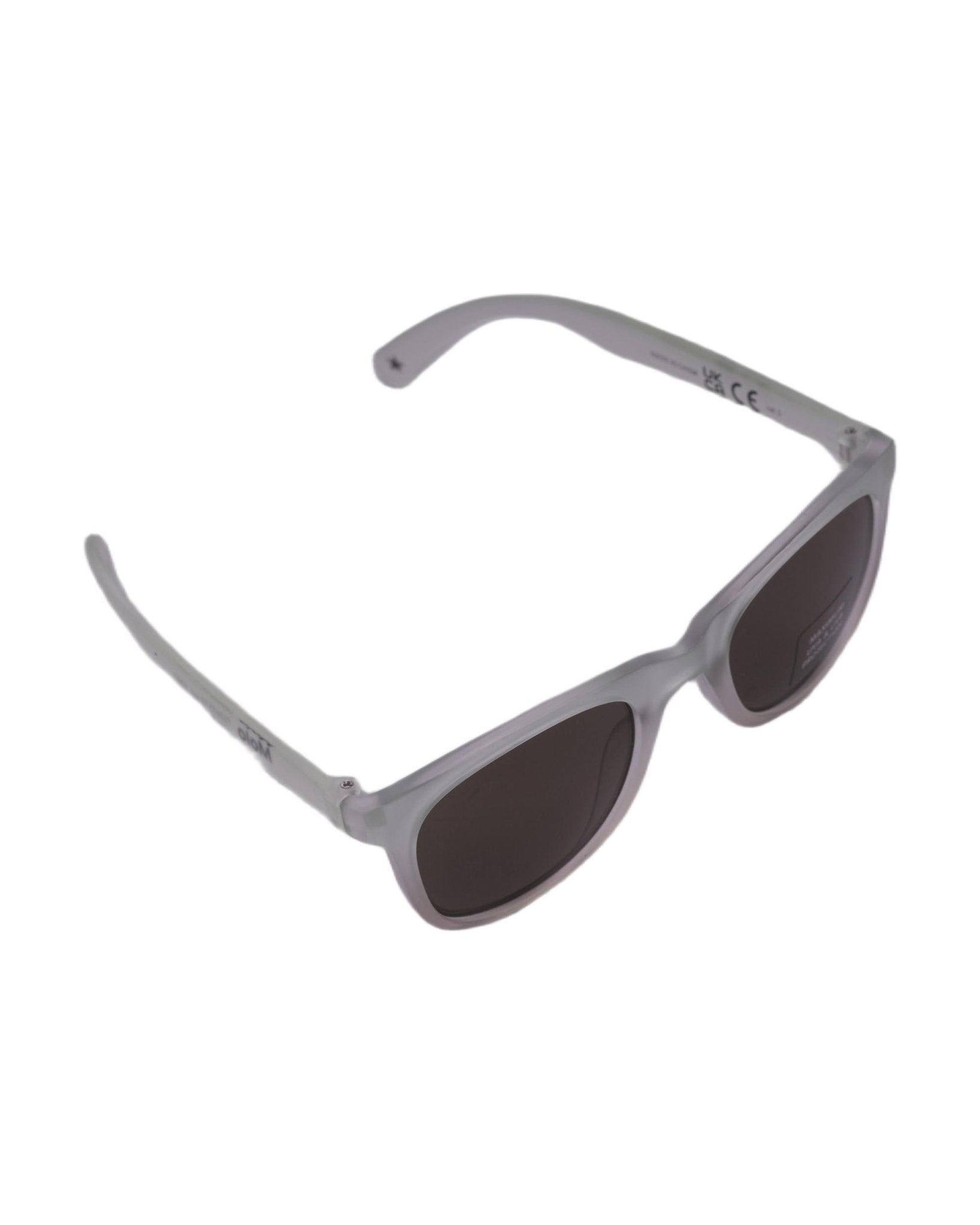 The Molo Smile children's sunglasses in green with brown lenses are available on the RubinoKids.com online store. Made of 100% polycarbonate, they feature a light green color, a square frame, brown lenses, a matte finish, and a logo detail. They are part of the Molo Spring/Summer 2026 collection and are available for immediate shipment with delivery within 24-48 hours in Italy.