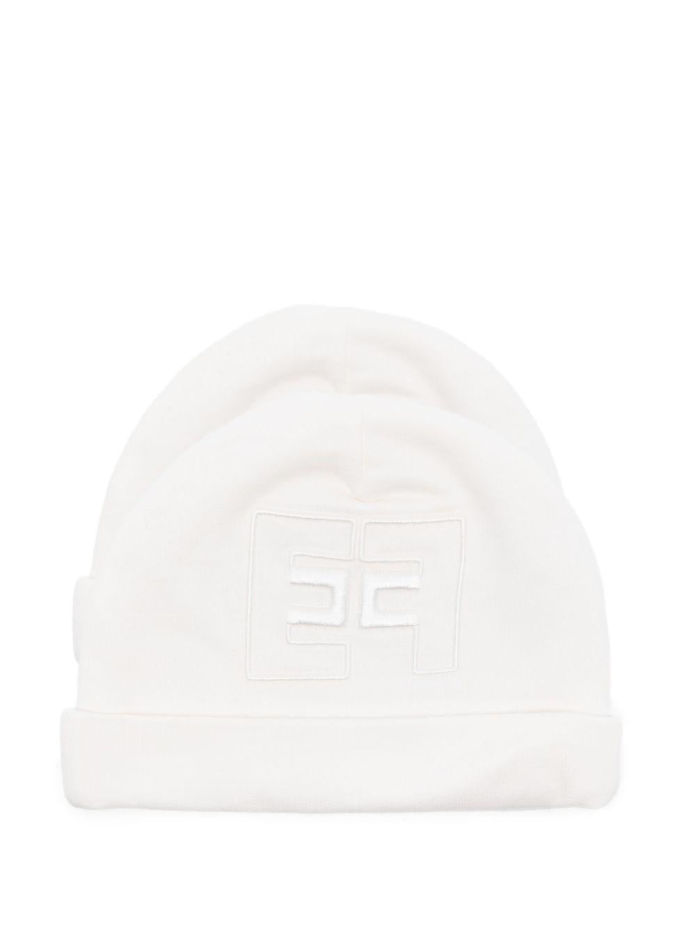 Elisabetta Franchi La Mia Bambina white baby hat with embroidered logo