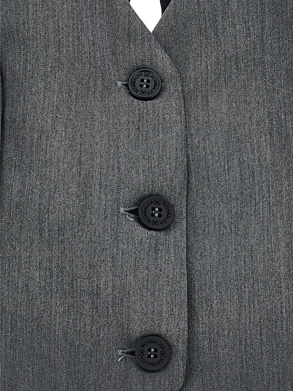 The Monnalisa gray vest for girls with a halterneck and knot is available on the online store RubinoKids.com. Made of 100% fabric, it is gray, has a front button closure, a halterneck with a knot, and is sleeveless. Available in various sizes, it is part of the Monnalisa Fall/Winter 2025 collection and is available for delivery in Italy within 24-48 hours.