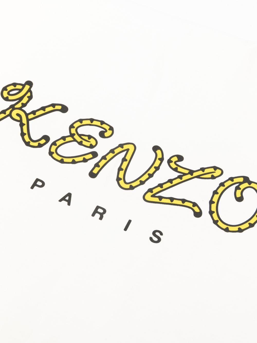The Kenzo Kids white baby blanket with tiger logo is available on the RubinoKids.com online store. Made of 100% cotton, it features a matte white color, a tiger logo, cotton, and a square shape. It is part of the Kenzo Kids Spring/Summer 2026 collection and is available for 24-48 hour delivery in Italy.