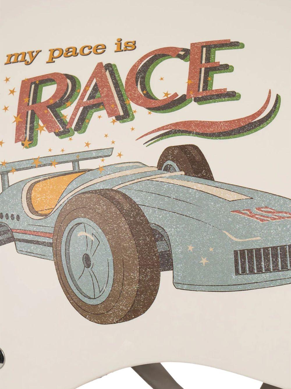 The Konges Sløjd Race Helmet for children in white with a racing car print is available on the RubinoKids.com online store. Made of 100% acrylonitrile butadiene styrene (ABS). The product features a white color, a racing car print, an adjustable shoulder strap, and side slits. Available in various sizes, it is part of the Konges Sløjd Fall/Winter 2025 collection and is available for 24-48 hour delivery in Italy.