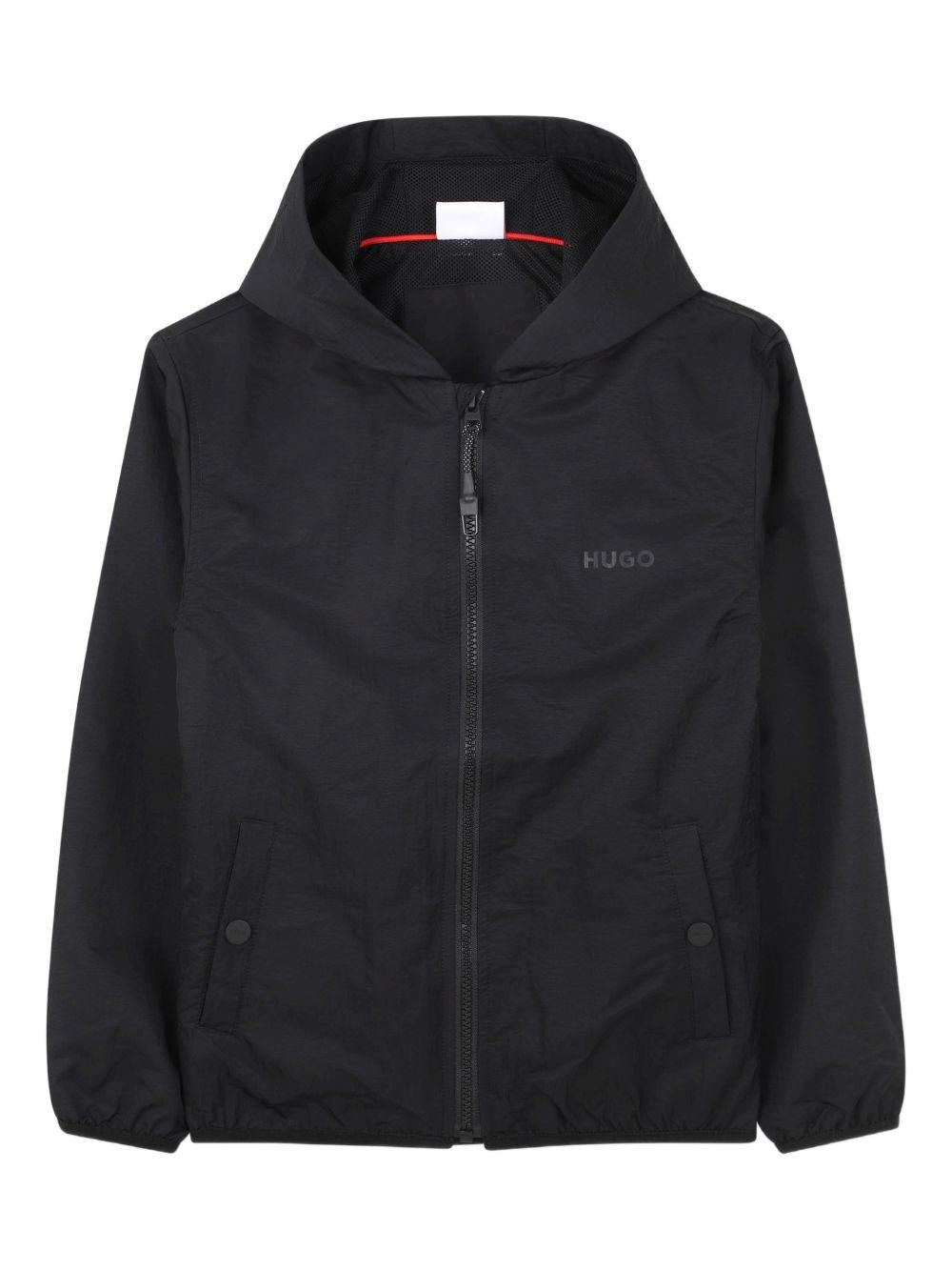 Il prodotto Giubbino per bambino Hugo Kids nero con stampa logo sul davanti è disponibile sullo store online RubinoKids.com. Realizzato in poliammide riciclato 100%. Il prodotto presenta un colore nero, cappuccio, chiusura con zip, logo sul davanti, logo sul retro, asche frontali. Varie taglie a catalogo, appartiene alla collezione Hugo Kids Primavera/Estate 2026 ed è disponibile con consegna in 24/48h per l'Italia.