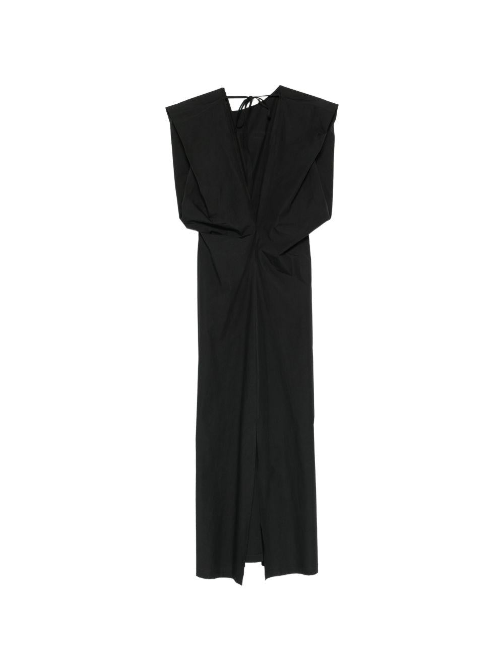 The Alysi black sleeveless dress for women is available on the RubinoKids.com online store. Made of 100% cotton, it is black, sleeveless, has a lace-up back, gathered details, and a crew neck. Available in various sizes, it is part of the Alysi Spring/Summer 2026 collection and is available for 24-48 hour delivery in Italy.
