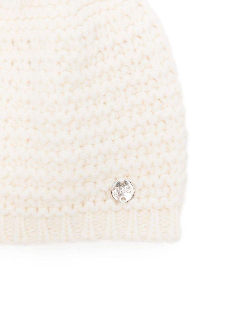The Paz Rodrìguez white baby hat with logo detail is available on the RubinoKids.com online store. Made of 50% acrylic and 50% wool, it features a white knit, logo detail, and a ribbed brim. Available in various sizes, it is part of the Paz Rodríguez Fall/Winter 2025 collection and is available for 24-48 hour delivery in Italy.