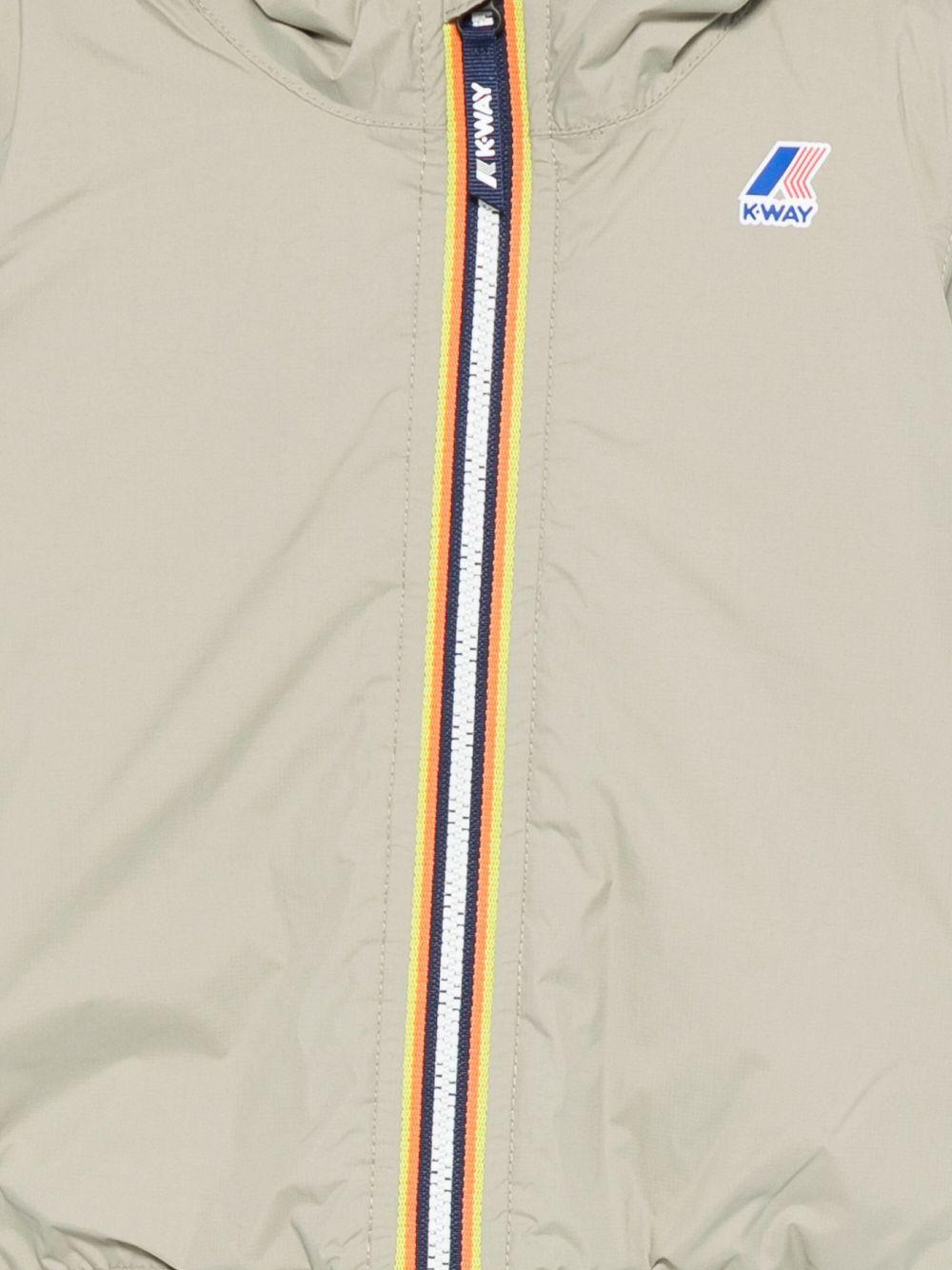 The K Way Kids green hooded jacket for baby boys and girls with a front zip is available on the RubinoKids.com online store. Made of 100% polyester, it is green, has a hood, zip closure, and long sleeves. Available in various sizes, it is part of the K Way Kids Fall/Winter 2025 collection and is available for immediate shipment with delivery within 24-48 hours in Italy.