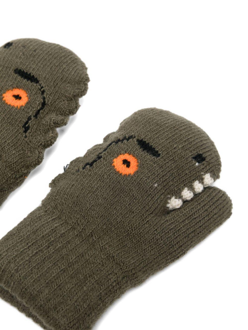 Molo Green Dinosaur Face Gloves for Kids
