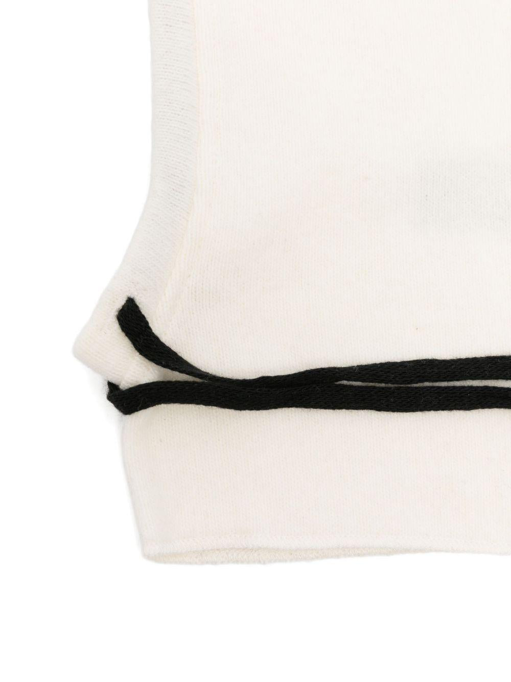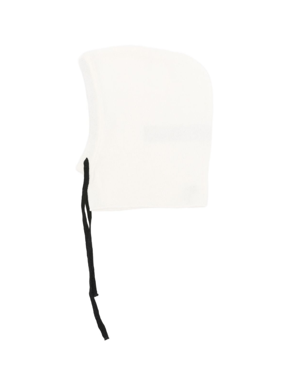 The Baby Balaclava Family Album Kids in white with contrasting trim is available on the RubinoKids.com online store. Made of 100% fabric, it features a white color, contrasting black trim, a drawstring closure, a front opening, and ribbed fabric. Available in various sizes, it is part of the Family Album Kids Fall/Winter 2025 collection and is available for delivery in Italy within 24-48 hours.