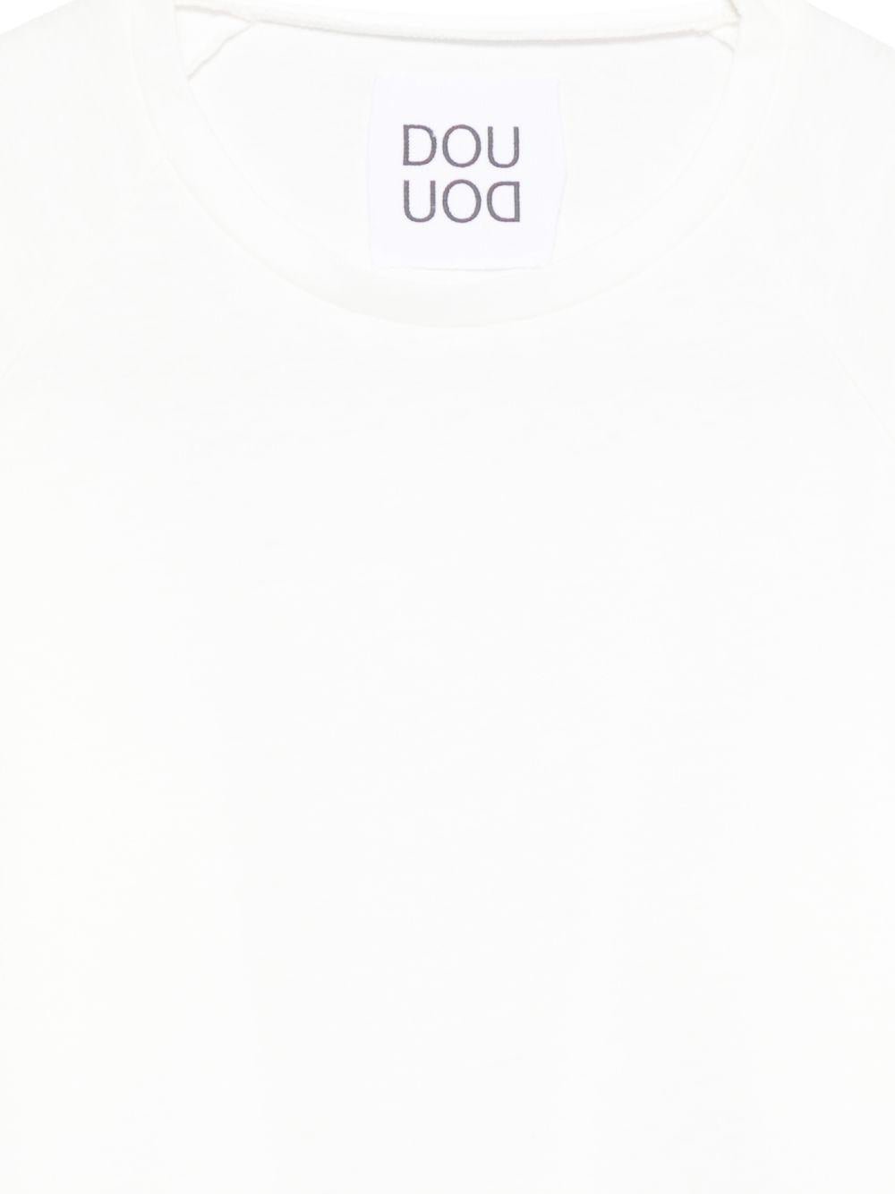 The Douuod Kids white T-shirt for girls with a logo on the back is available on the RubinoKids.com online store. Made of 100% cotton, it features a white color, short sleeves, a crew neck, and a straight hem. Available in various sizes, it is part of the Douuod Kids Spring/Summer 2026 collection and is available for 24-48 hour delivery in Italy.