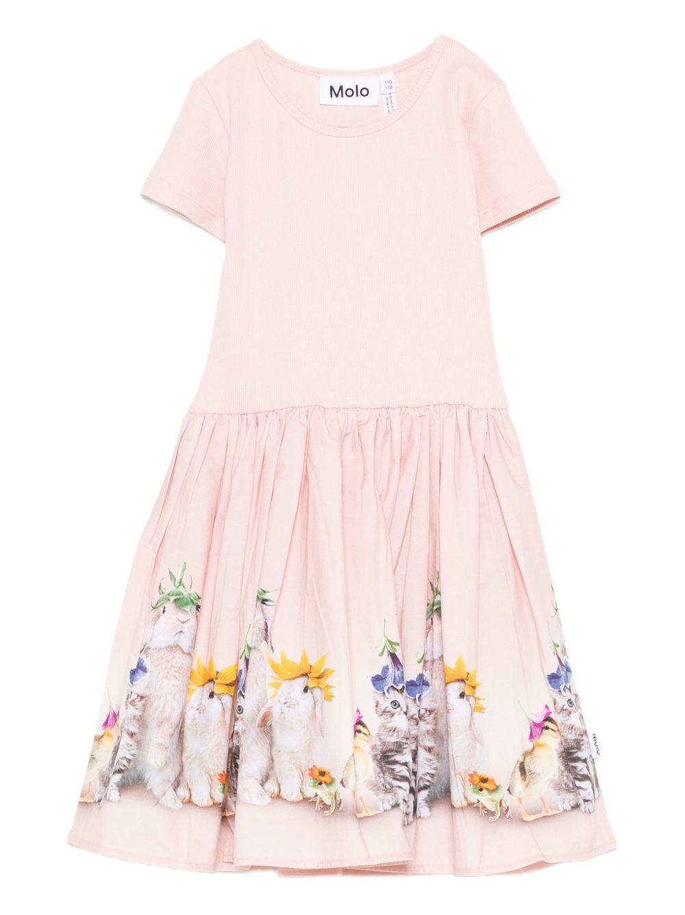 Molo pink dress for girls with graphic animal print