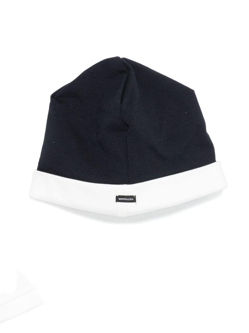 Monnalisa blue baby boy vest, shirt, trousers and hat set with bow tie
