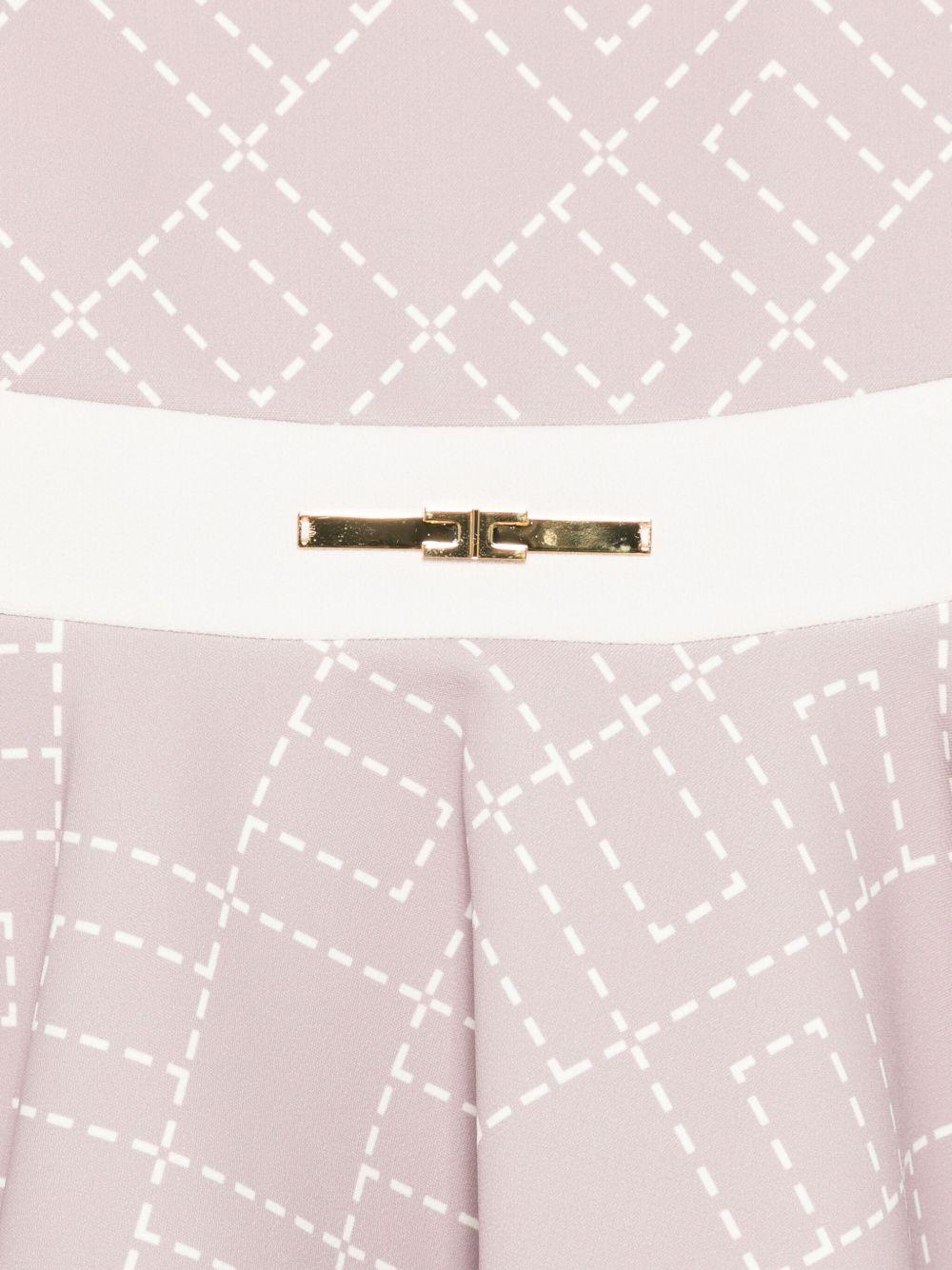 The Elisabetta Franchi La Mia Bambina pink flared dress for newborns with print is available on the online store RubinoKids.com. Made of 95% polyester, 5% elastane, the pastel pink product features a monogram print, a contrasting waist, a gold-tone logo plaque, sleeveless, and a flared skirt. Available in various sizes, it is part of the Elisabetta Franchi La Mia Bambina Fall/Winter 2025 collection and is available for immediate shipment with delivery within 24-48 hours in Italy.